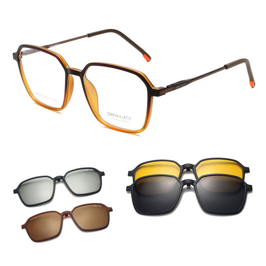 GREY JACK Rectangle TR90 Clip on Glasses With 4PCS Magnetic Lens 6044