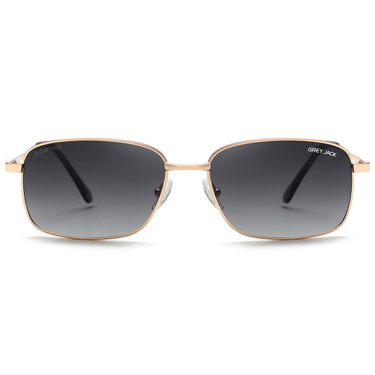 GREY JACK Metal Polarized Rectangle UV Protected Sunglasses 1257