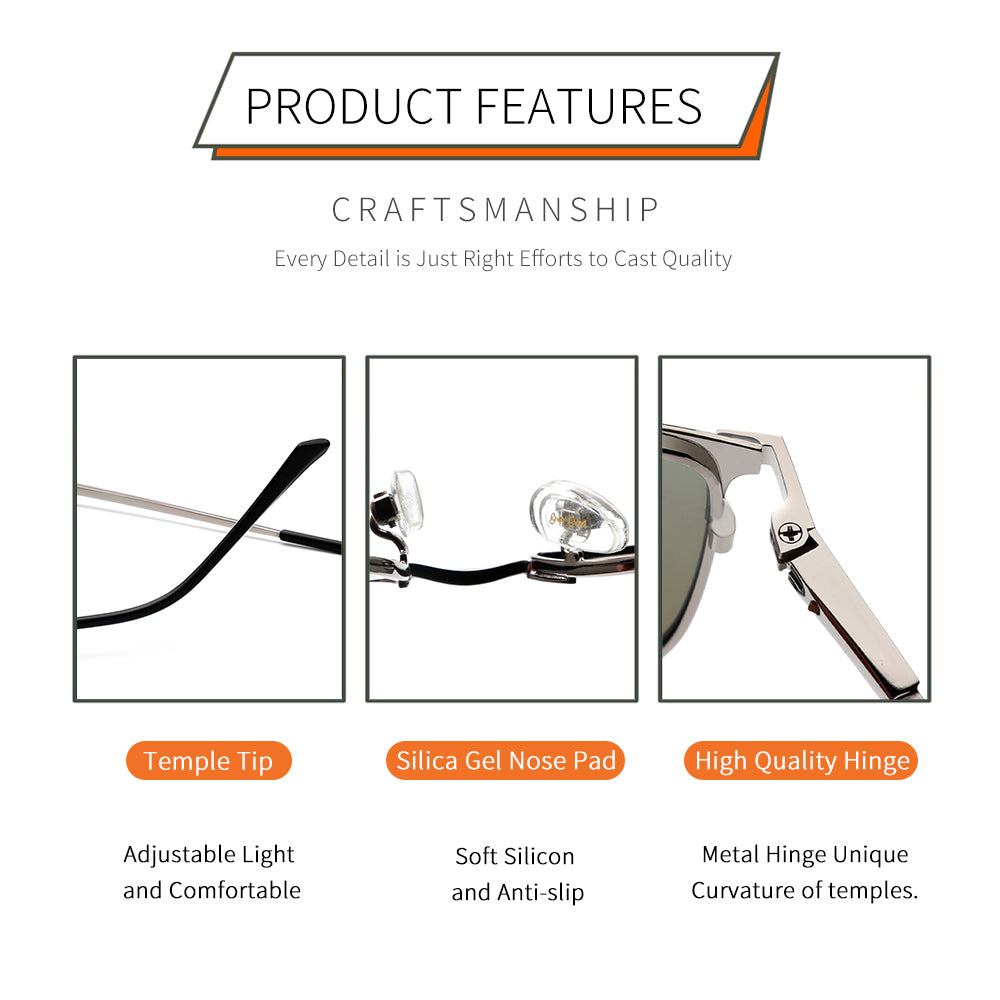 UV400 Protection Against Harmful UVA/UVB Rays. UVA and UVB Ultra Violet Blocking Lenses with Added Polarization for Eliminating Glare While Maintaining Color Integrity. High-Definition Lens Gives You A Natural and Clear Vision;Durable and Shatterproof.