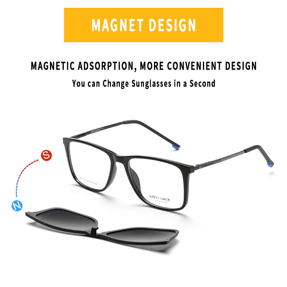 GREY JACK Polarized 4PCS Lens Unisex Clip On Glasses with Spring Hinge 6103