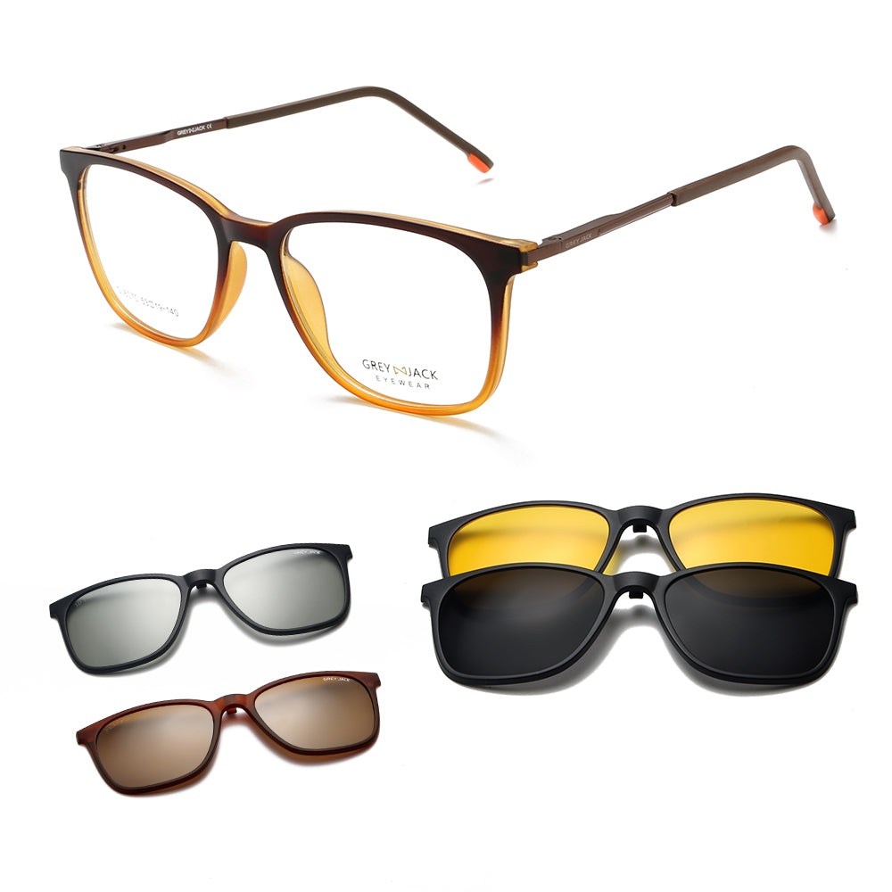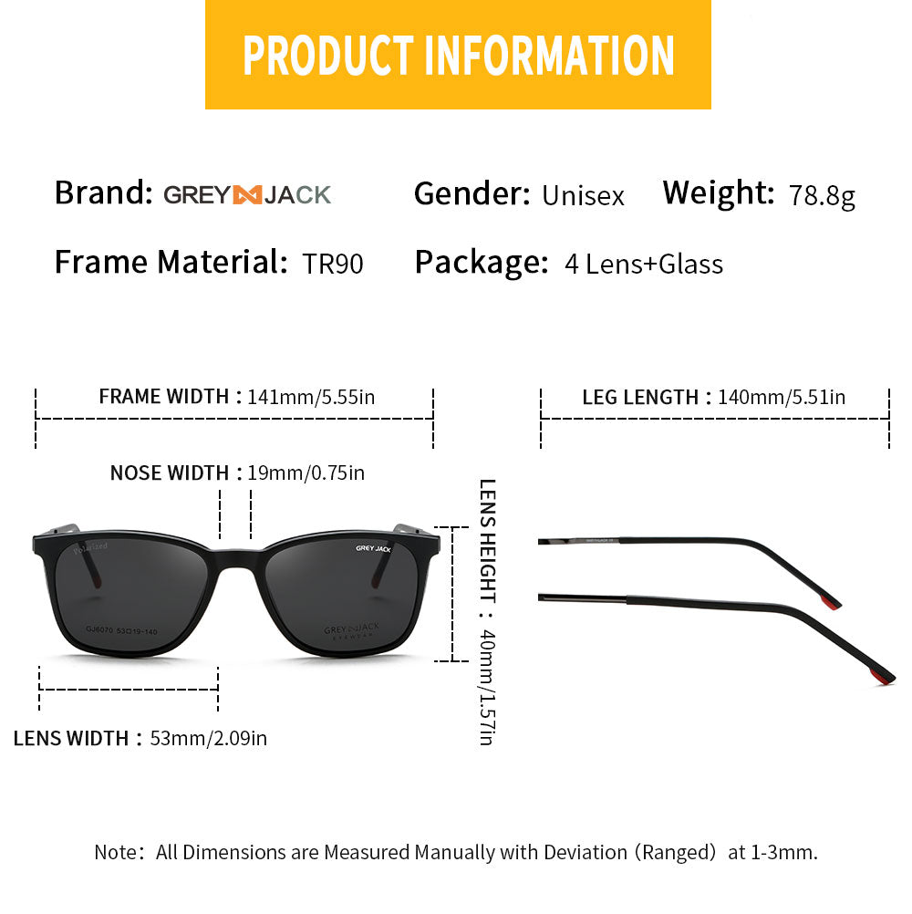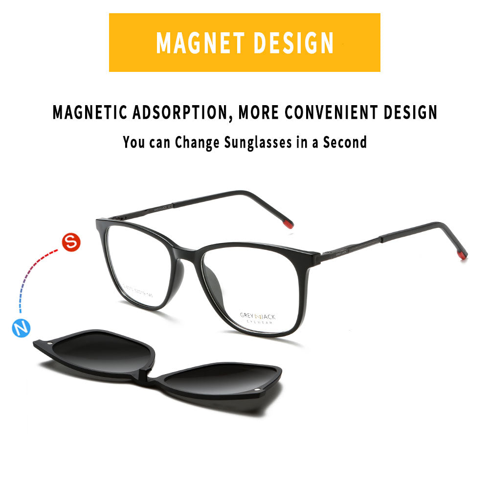 GREY JACK 3D Polarized Clip On Sunglasses with 4PCS Magnetic Lens for Myopia 6070