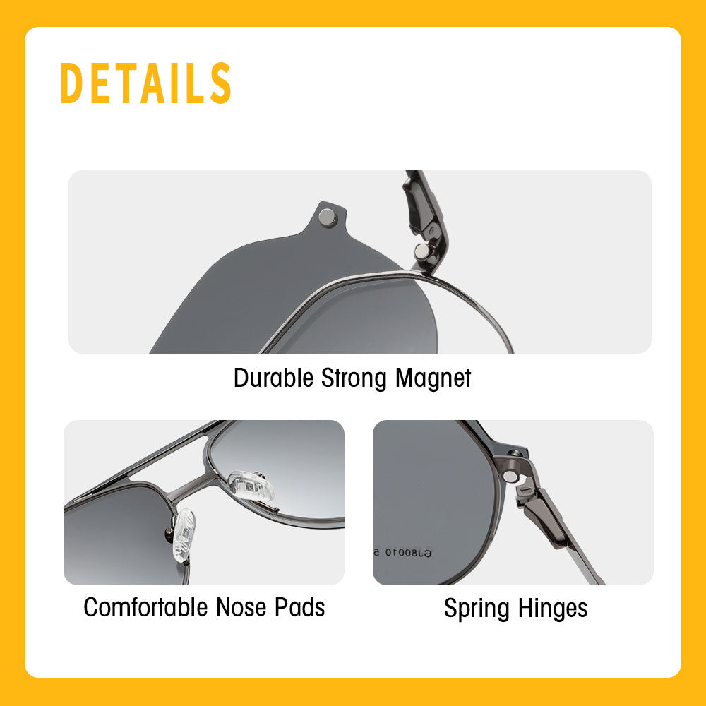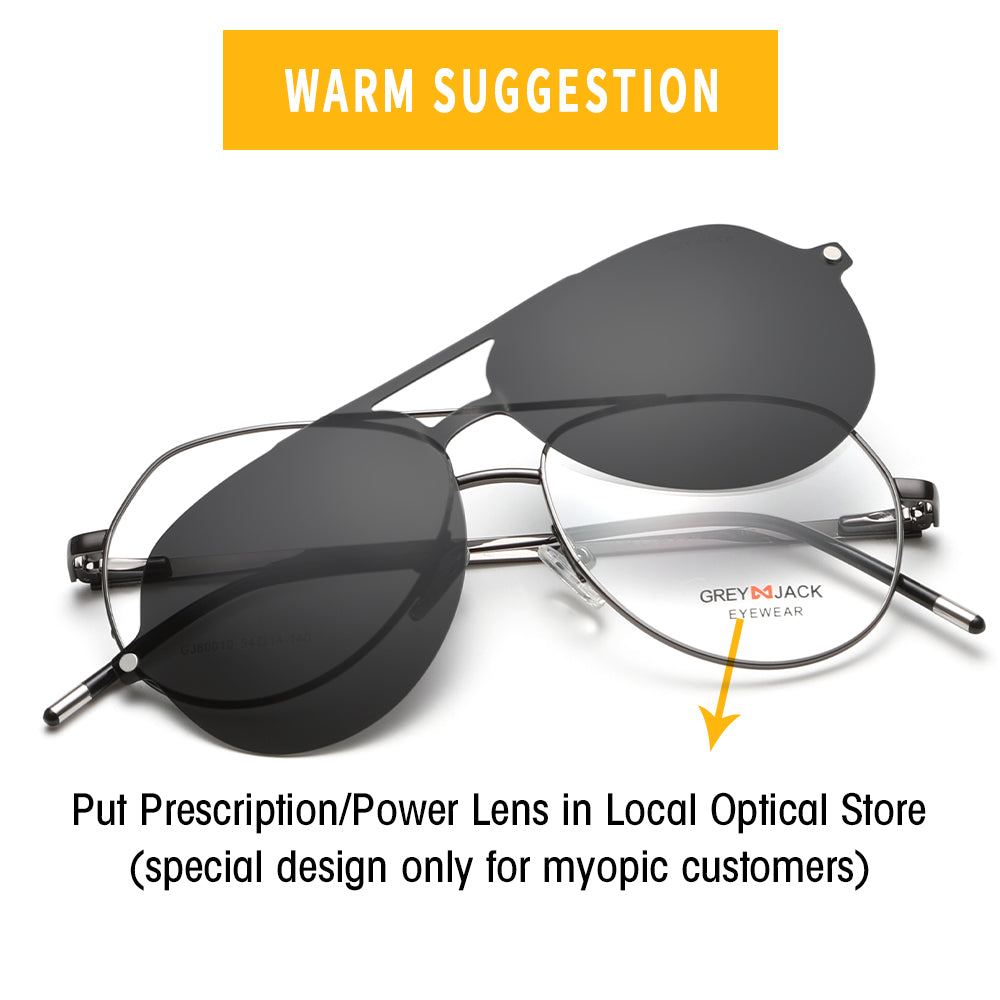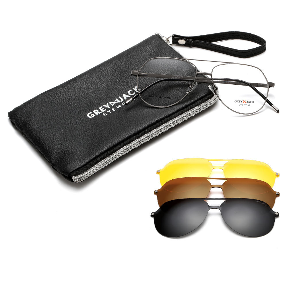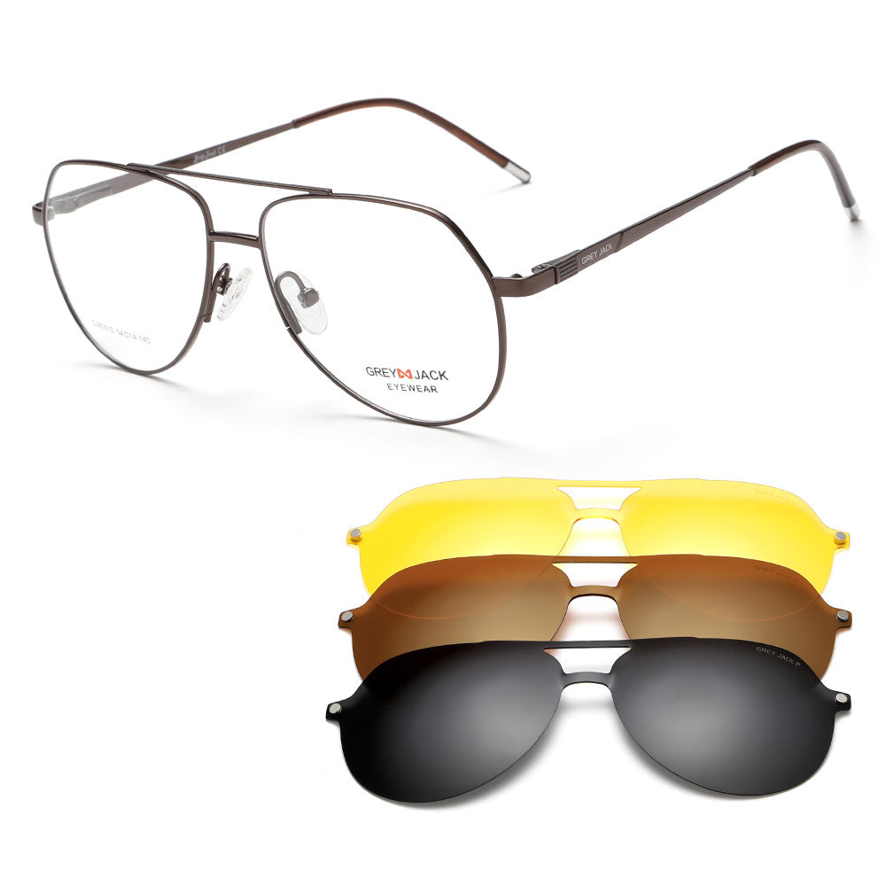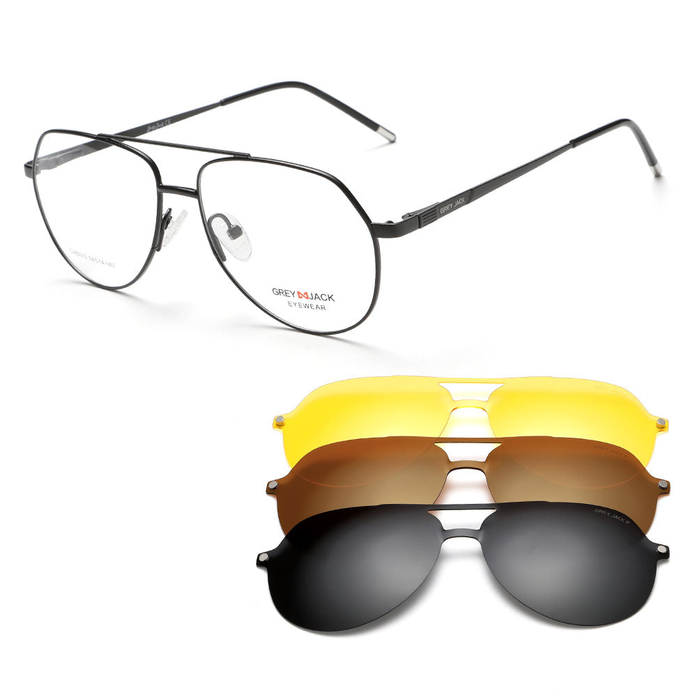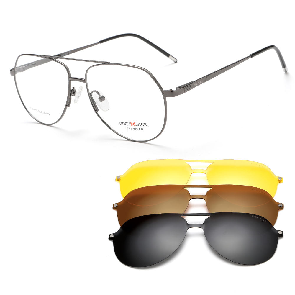 GREY JACK 3PCS Clip On Sunglasses Pilot Spectacle Frame with Magnetic Lens 80010