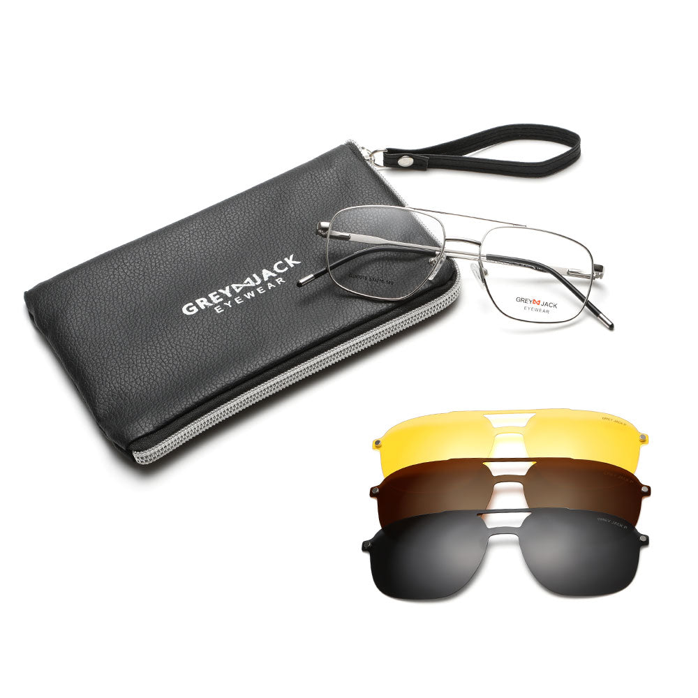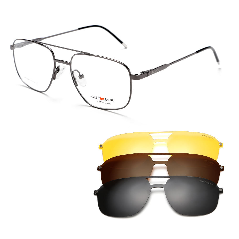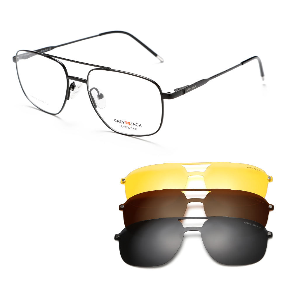 GREY JACK 3PCS Clip On Sunglasses Polygon Spectacle Frame with Magnet Lens 80019