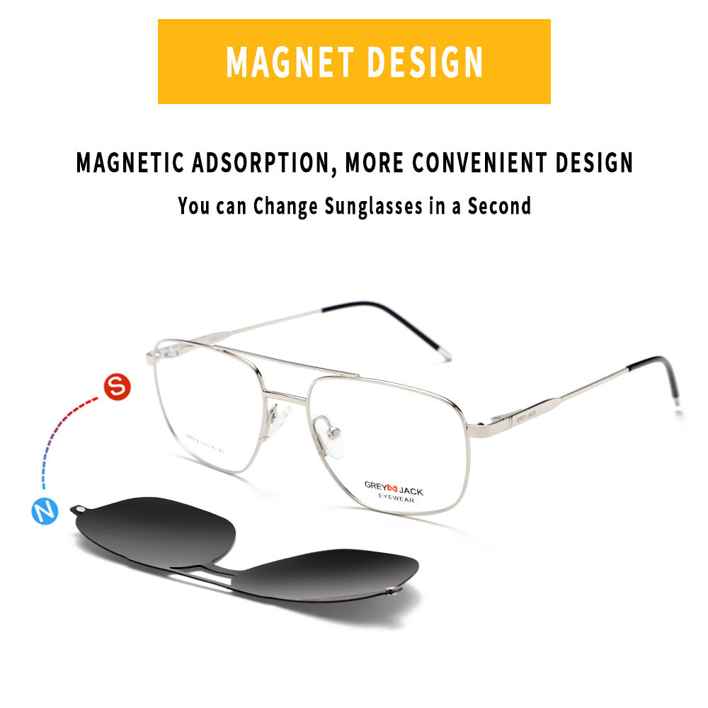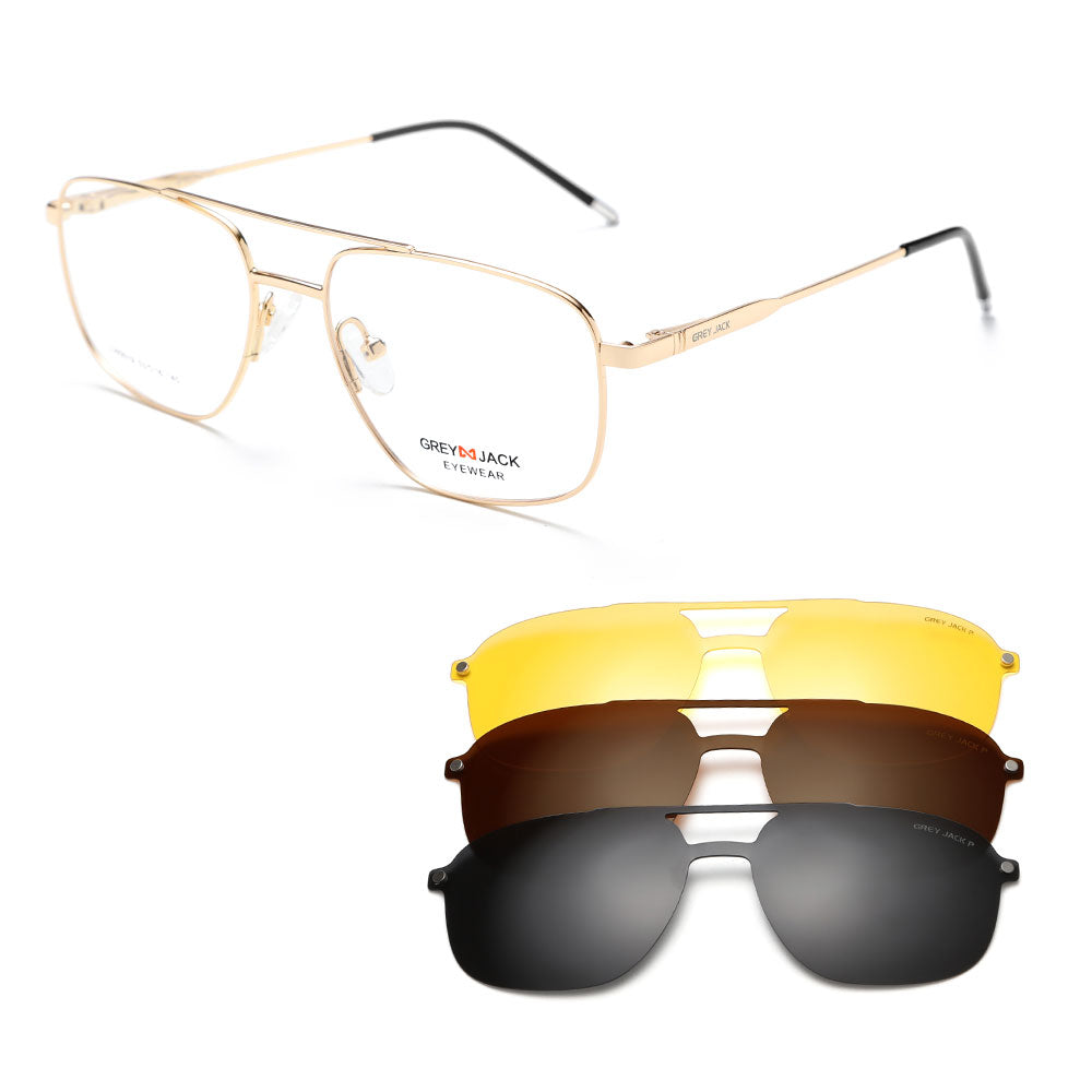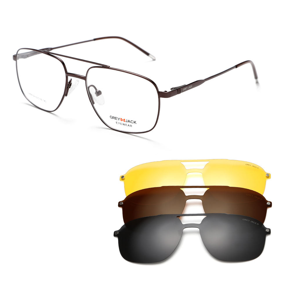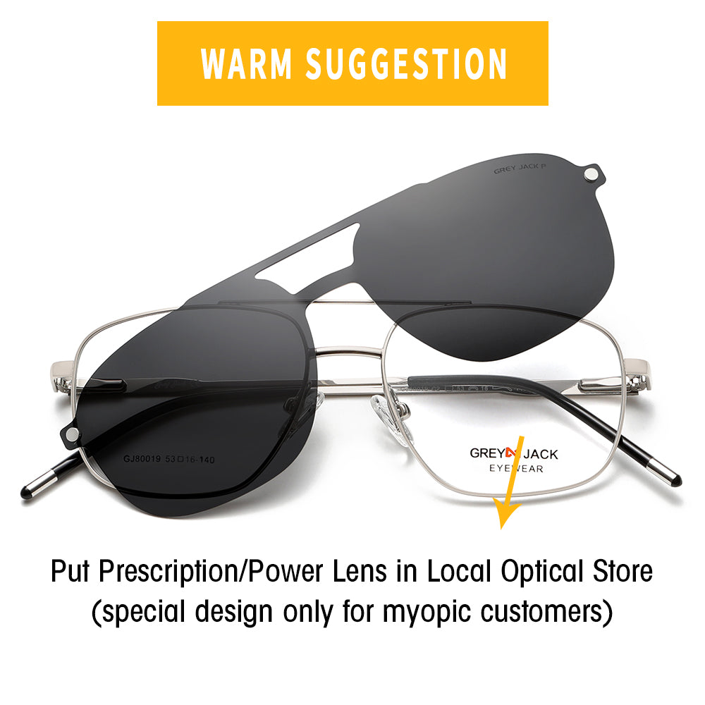 GREY JACK 3PCS Clip On Sunglasses Polygon Spectacle Frame with Magnet Lens 80019