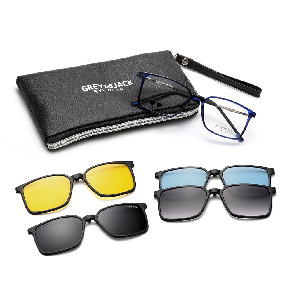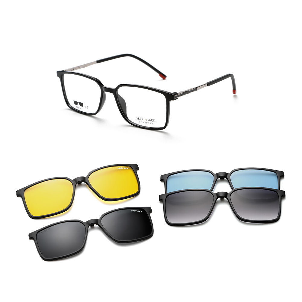 GREY JACK 4 in 1 Magnetic TR90 Rectangle Sunglasses 6091