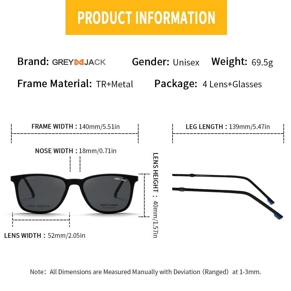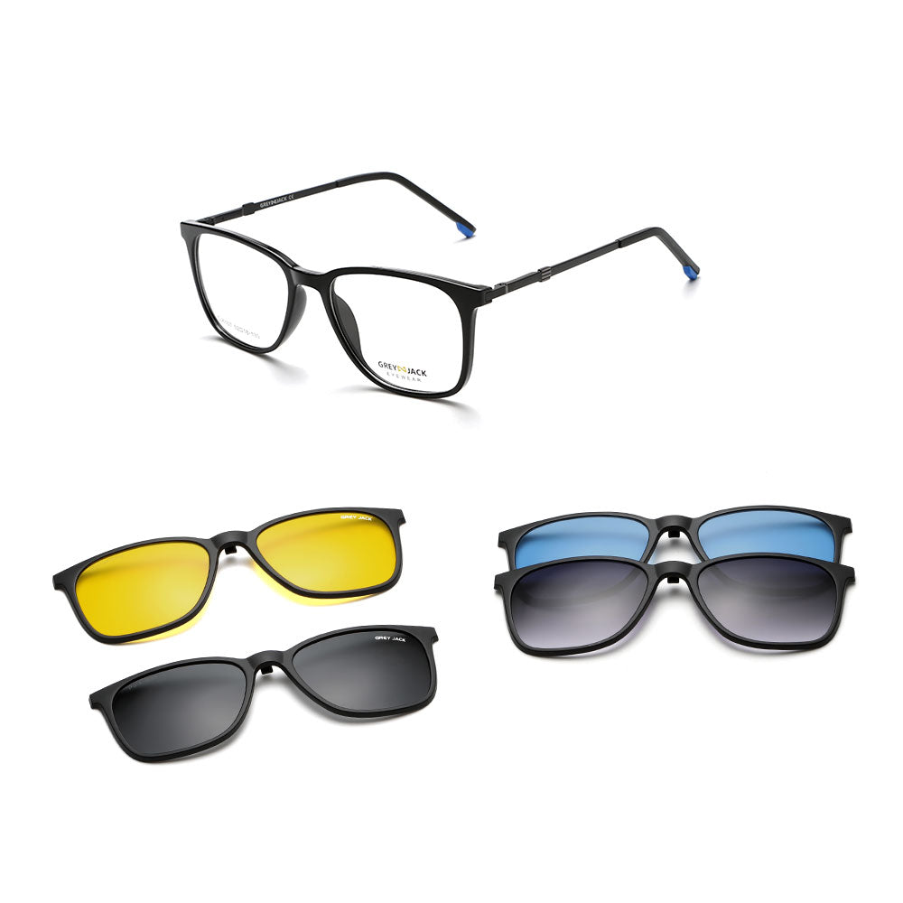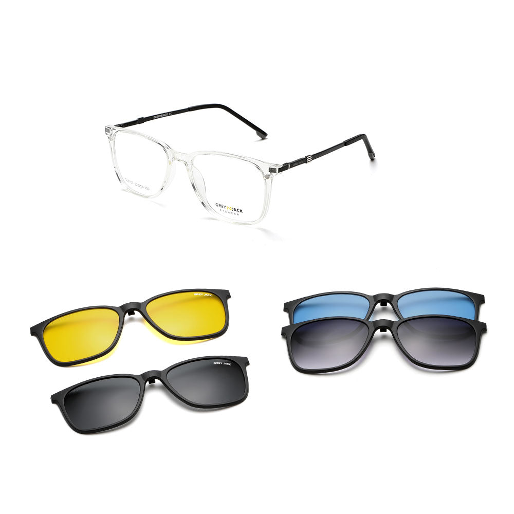 GREY JACK 4PCS TR90 Frame Clip On Glasses for Myopic Men Women 6107