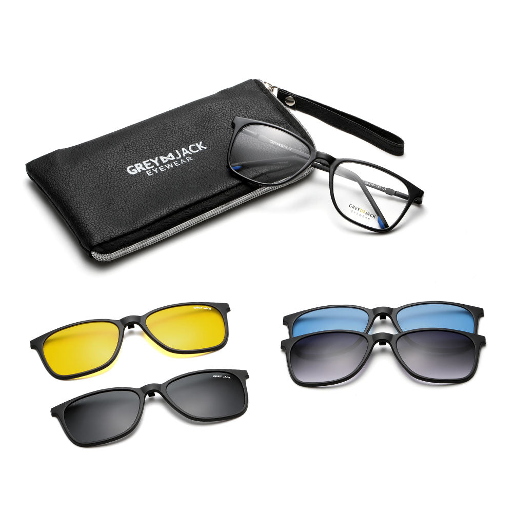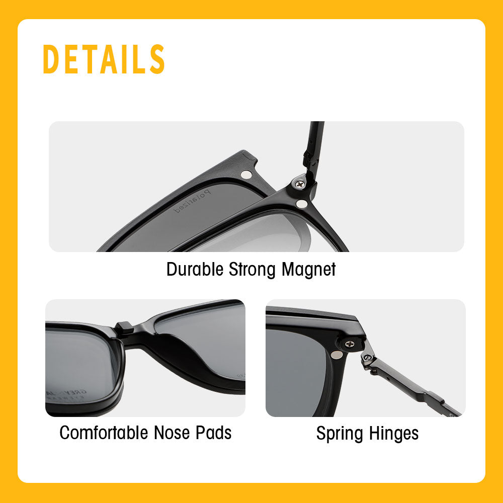Easy to wear, the clips with magnets allow you to switch between different lenses at will, and have 4 different styles of sunglasses at the same time. One is polarized lens; One is night driving polarized lens; Two are non-polarized sunglasses lenses.