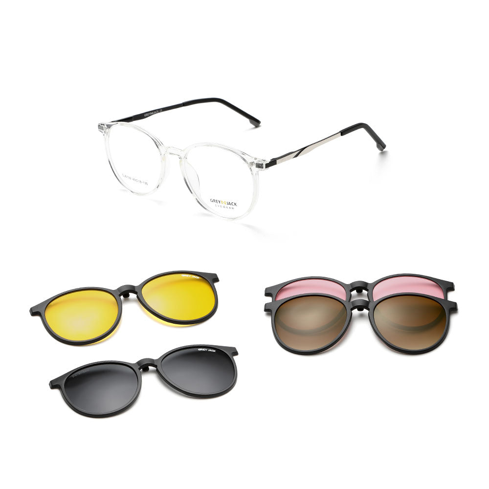 GREY JACK 4PCS TR90 Frame Round Clip On Glasses for Myopic Men Women 6109