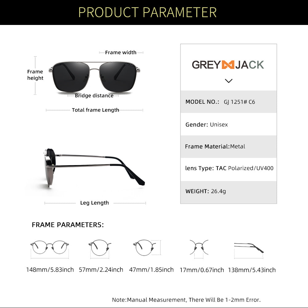 GREY JACK Big Size Square Metal Polarized Sunglasses 1251
