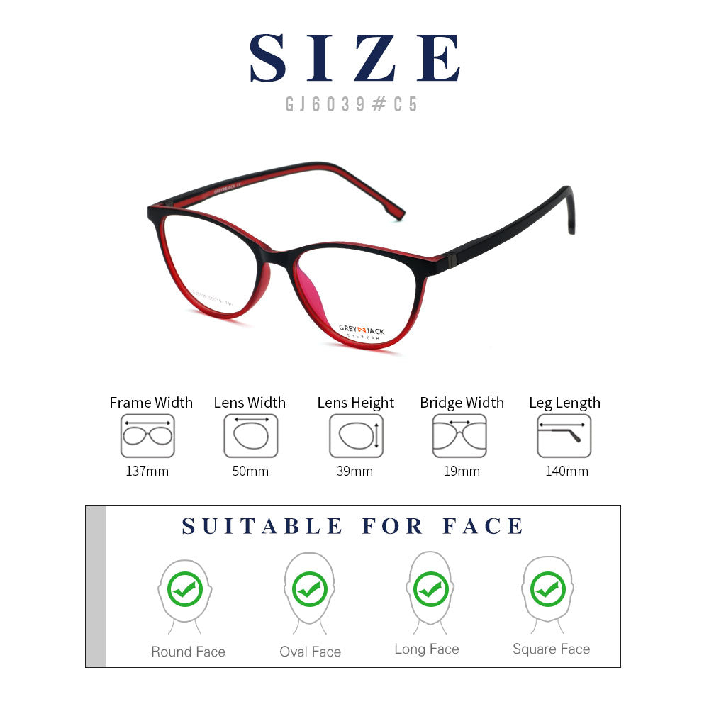 GREY JACK Cateye TR90 Spectacle Frame with 5PCS Magnetic Lenses 6039