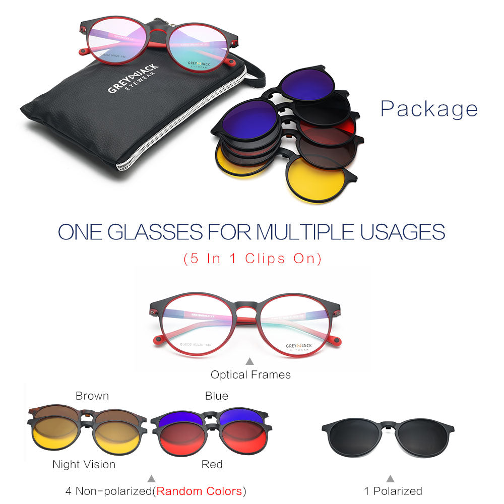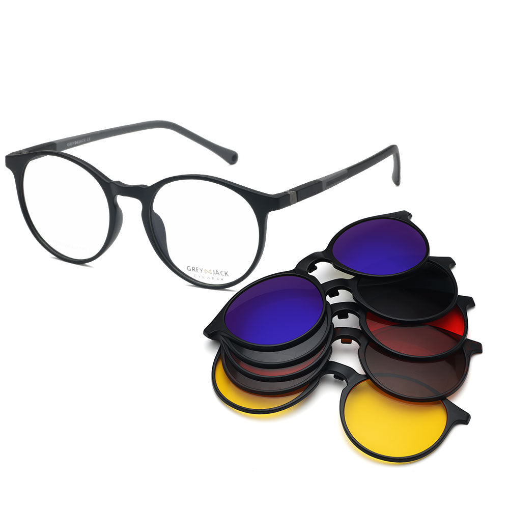 GREY JACK Clip On Round TR90 Spectacle Frame with 5PCS Magnetic Lenses 6032