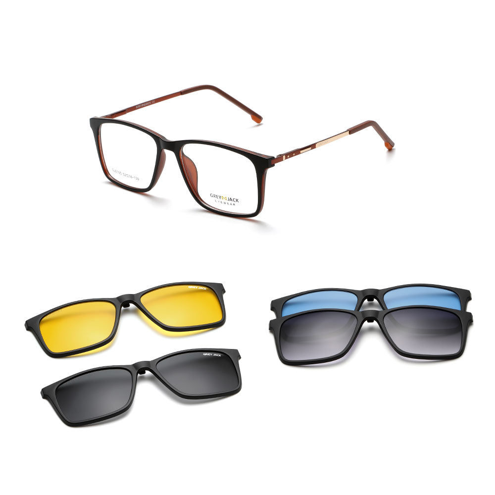GREY JACK Latest Stylish Rectangle Magnetic Clip On Glasses for Men Women 6105