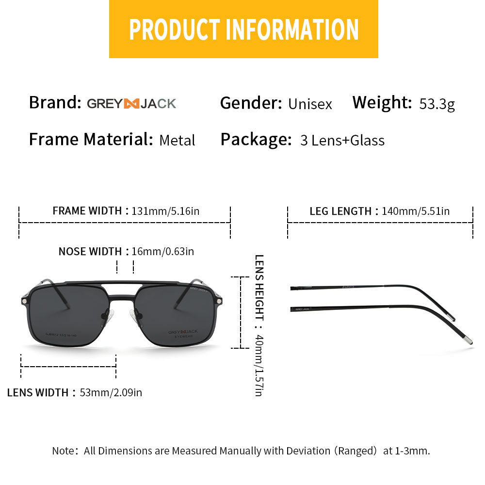 GREY JACK Magnetic 3pcs Clip On Glasses with Polarized Lens 80012