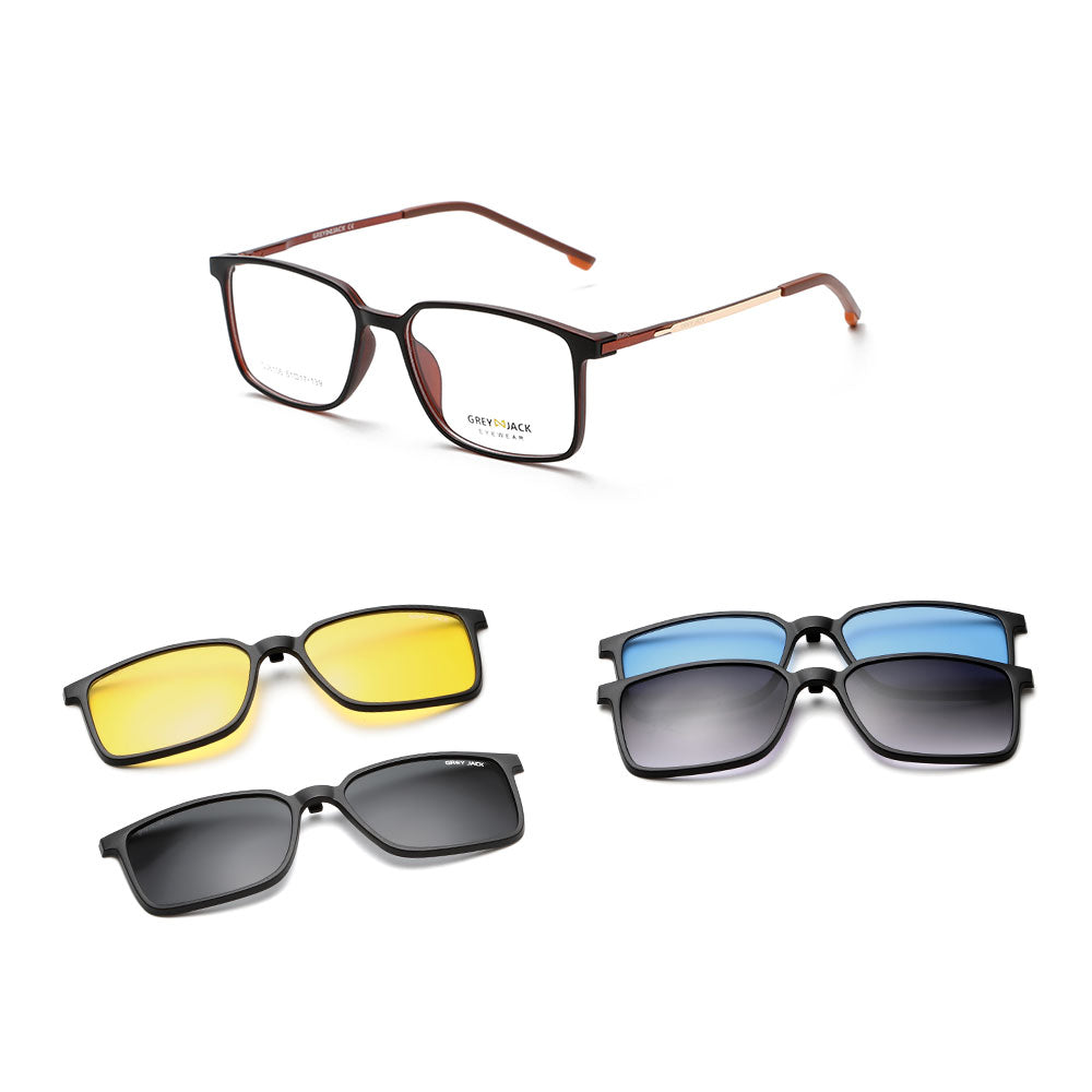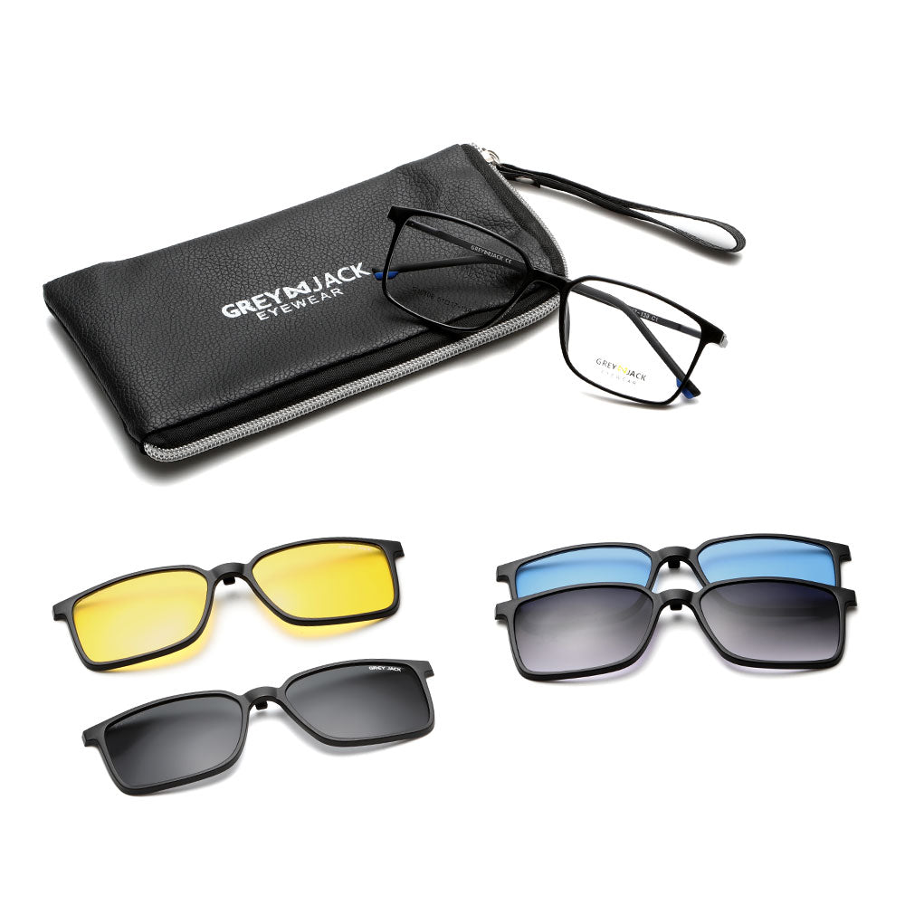 GREY JACK Magnetic Clip On Sunglasses 4 In 1 UV Protection for Myopic People 6106