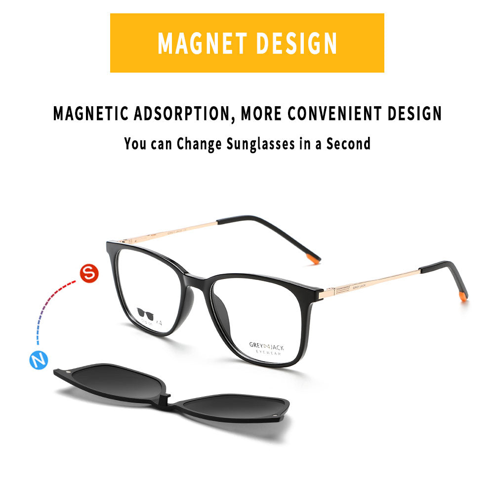 GREY JACK Magnetic Clip On Sunglasses for Myopic Men Women AGJ6071
