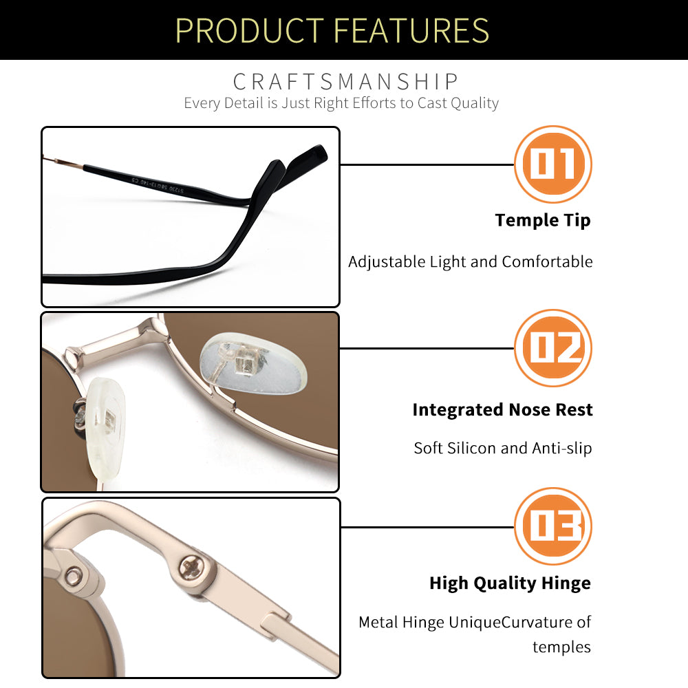 GREY JACK Metal Frame Pilot Polarized UV Protected Sunglasses 1230