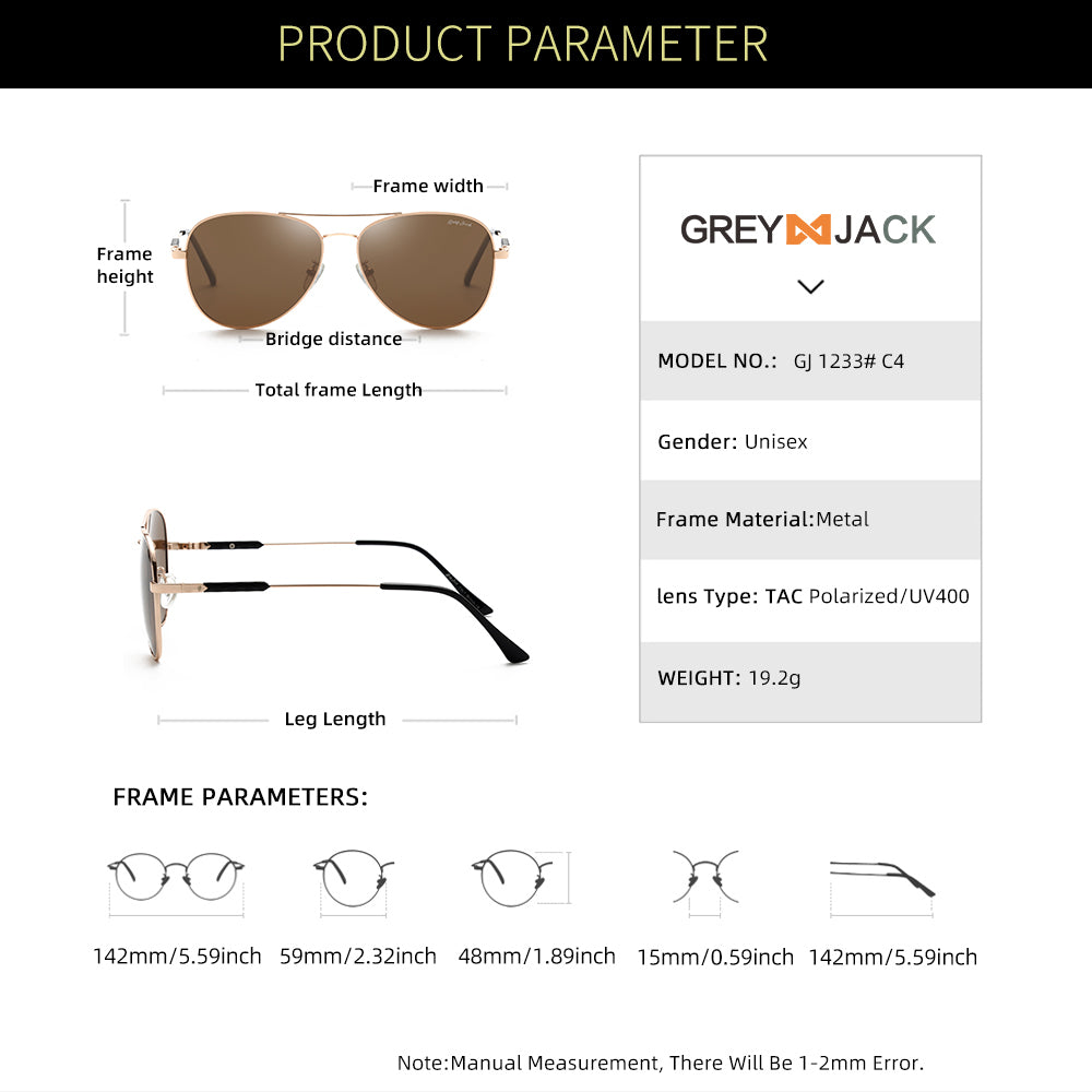 GREY JACK Metal Pilot Polarizd UV Protected Sunglasses 1233