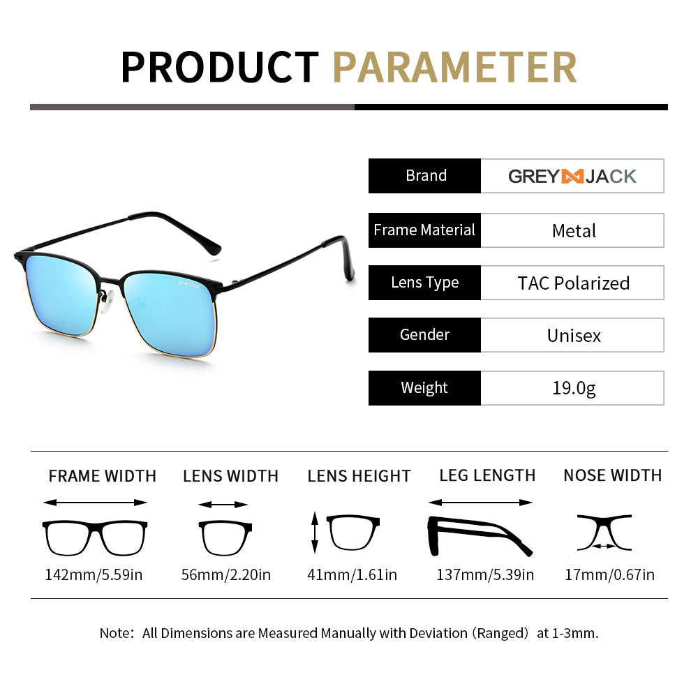 grey jack Metal Polarized UV400 Protected Square Sunglasses 3055