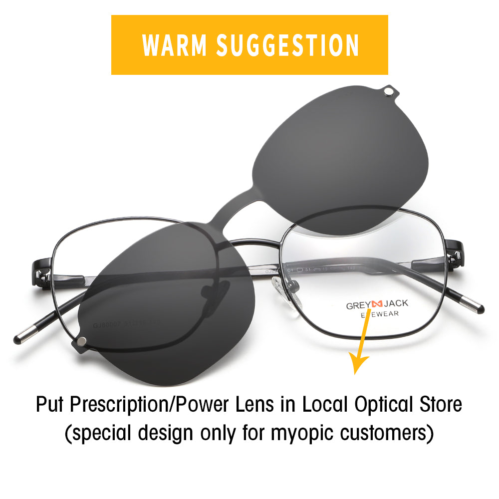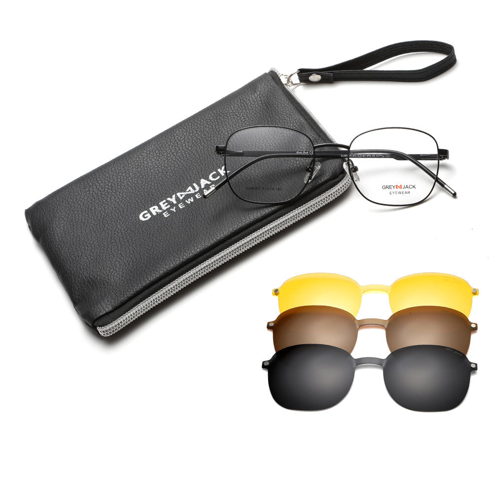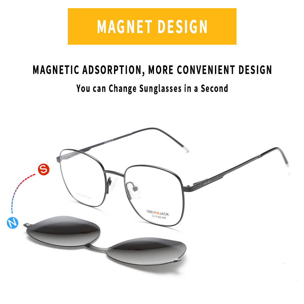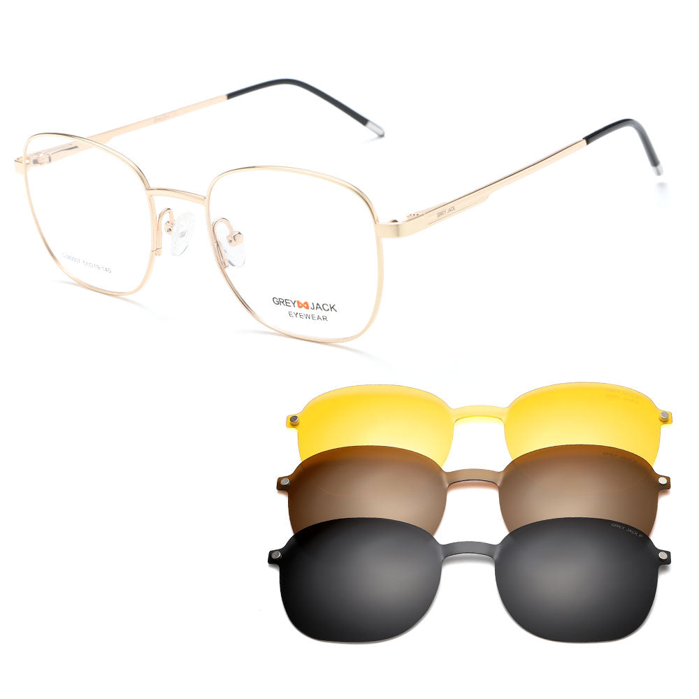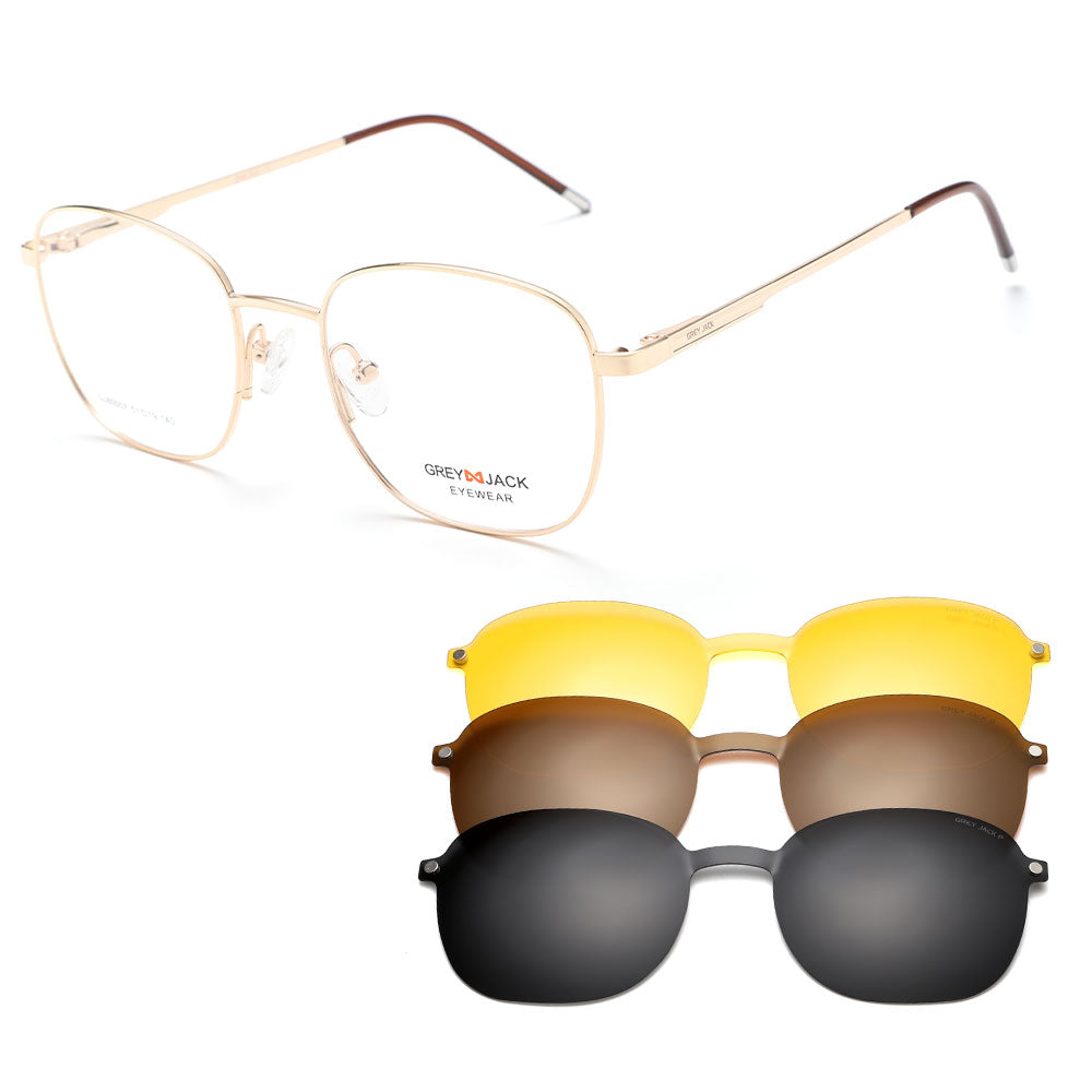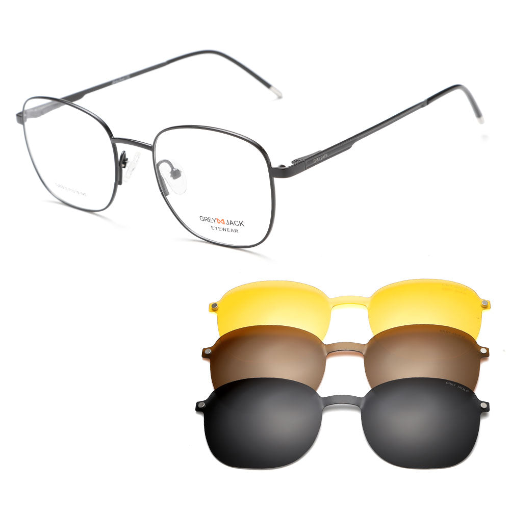 GREY JACK Metal Square Clip On Glasses with 3PCS Magnetic Lens 80007