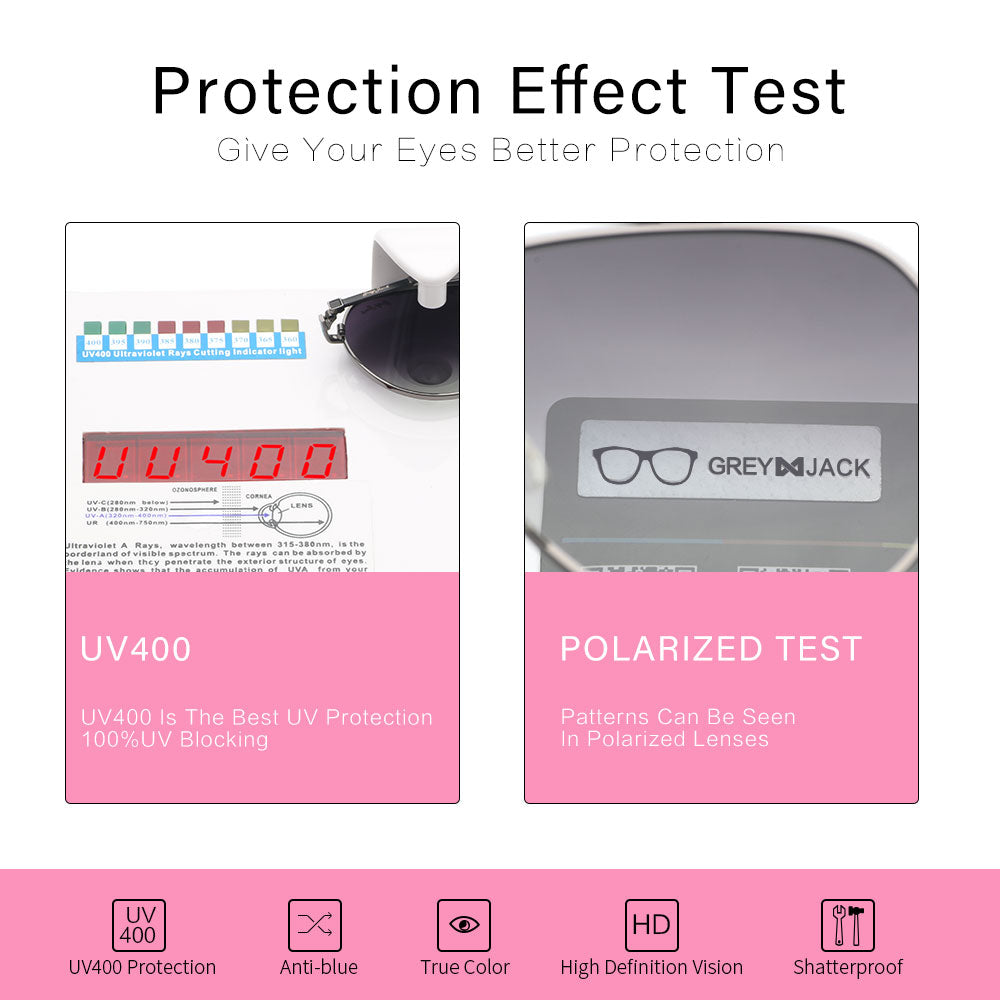 UV400 Protection Against Harmful UVA/UVB Rays. UVA and UVB Ultra Violet Blocking Lenses with Added Polarization for Eliminating Glare While Maintaining Color Integrity. High-Definition Lens Gives You A Natural and Clear Vision;Durable and Shatterproof.