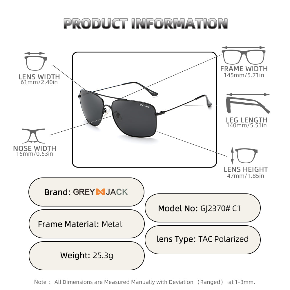 GREY JACK Polarized Rectangle Sunglasses,Classic Eyeglasses for Men Women 2370