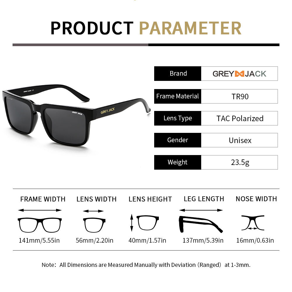 GREY JACK Rectangle Polarized TR90 Frame UV400 Sunglasses for Men Women 1923