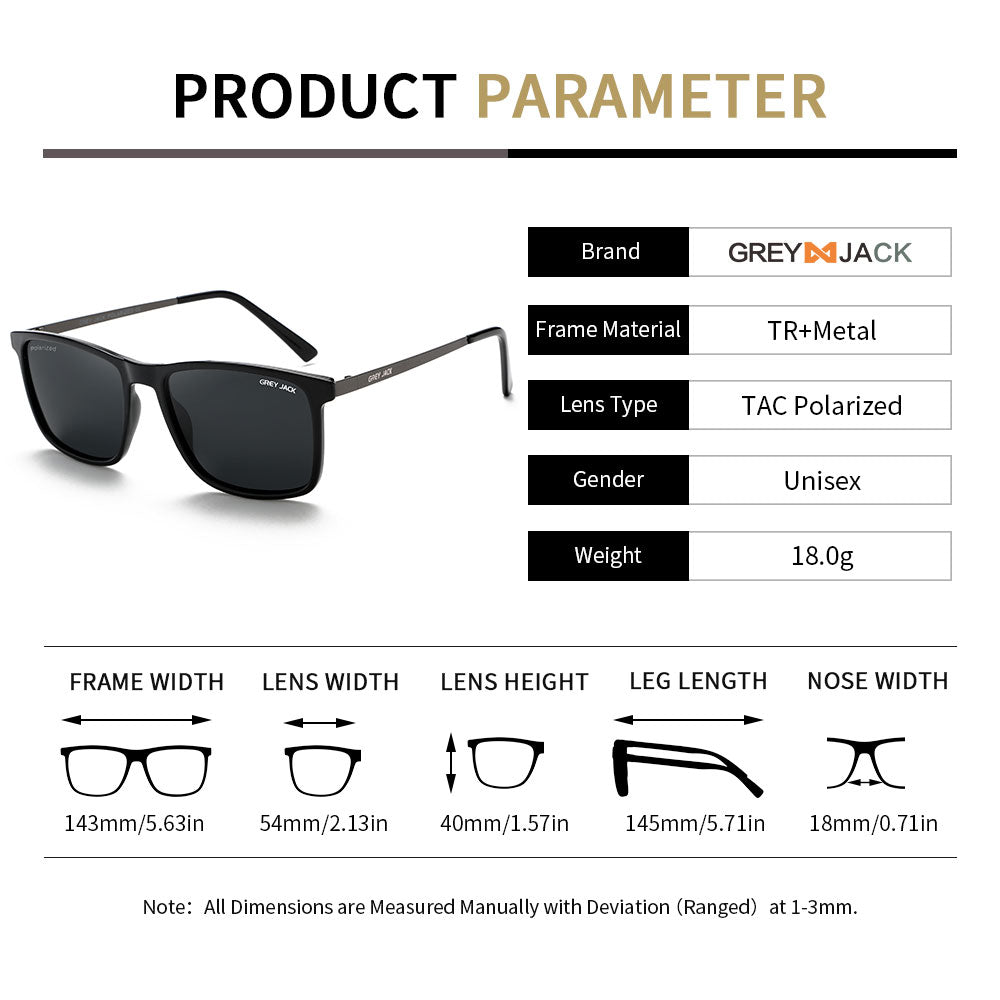 GREY JACK Rectangle Shape Polarized Sunglasses TR90 Metal Frame 3206
