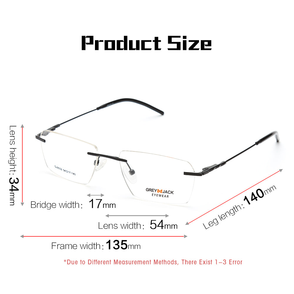 grey jack Rimless Spectacle Frame, Metal Rectangle Frame 9002