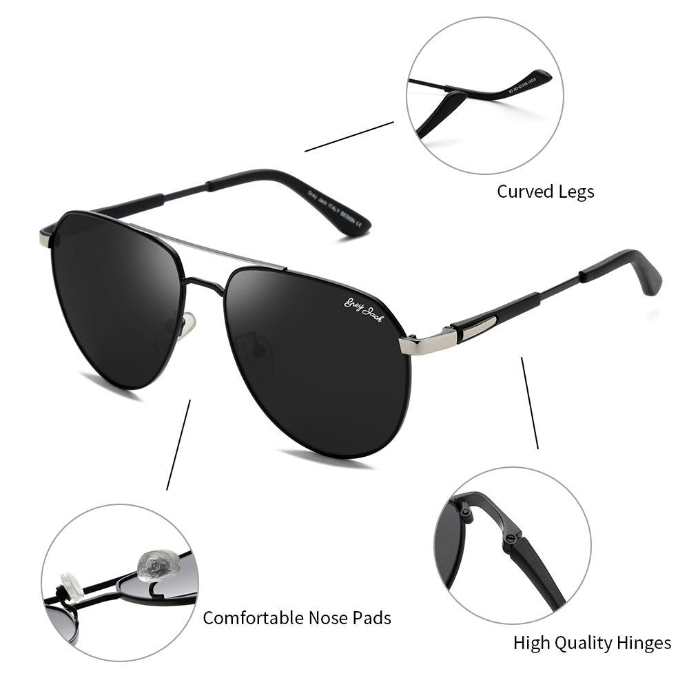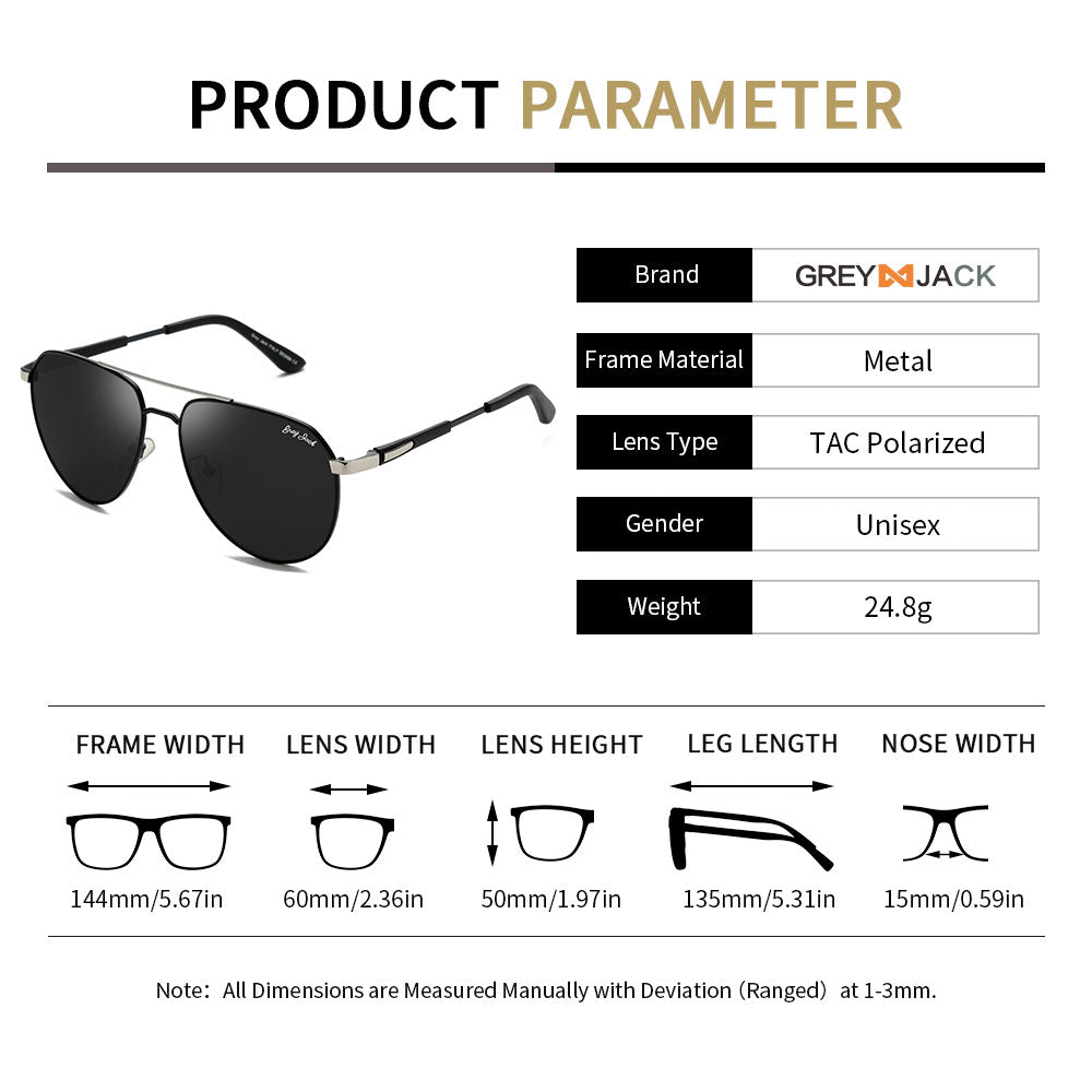 GREY JACK Pilot Metal Polarized UV Protected Sunglasses 1241