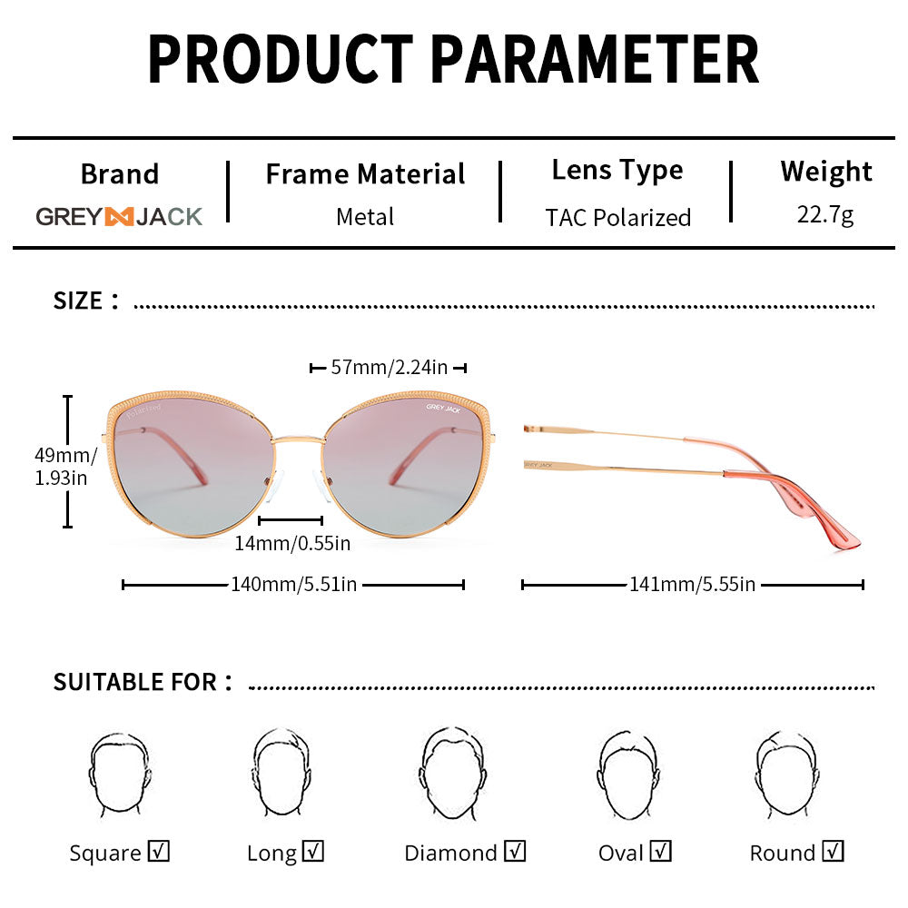 GREY JACK Stylish Oversized Cateye Polarized Sunglasses for Women 3222