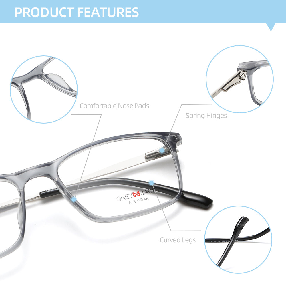 GREY JACK TR90 Rectangle Spectacle Frame for Men Women 72079