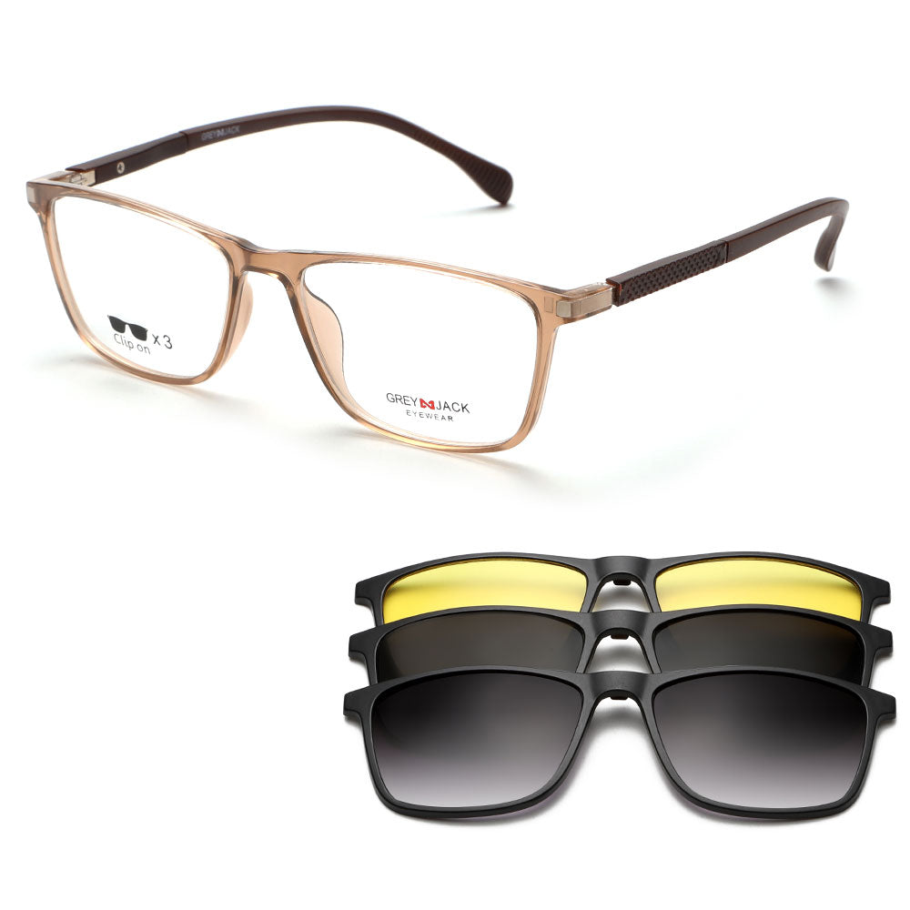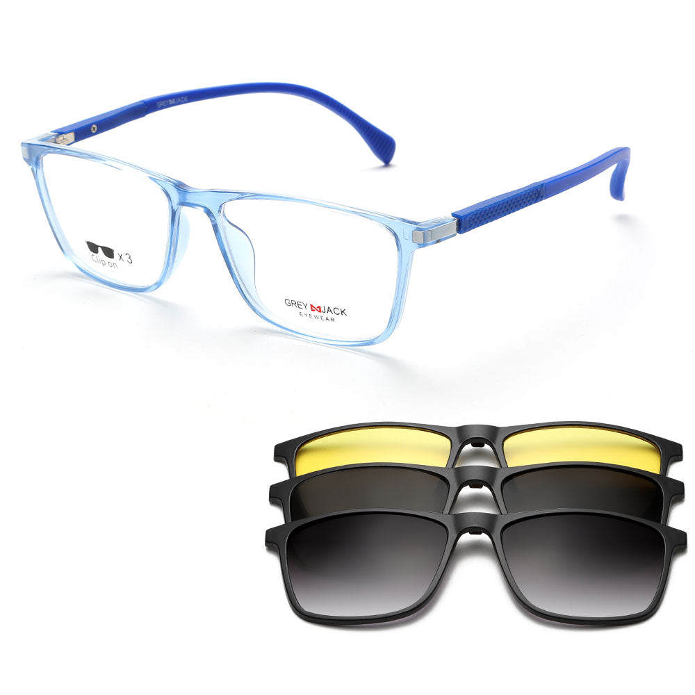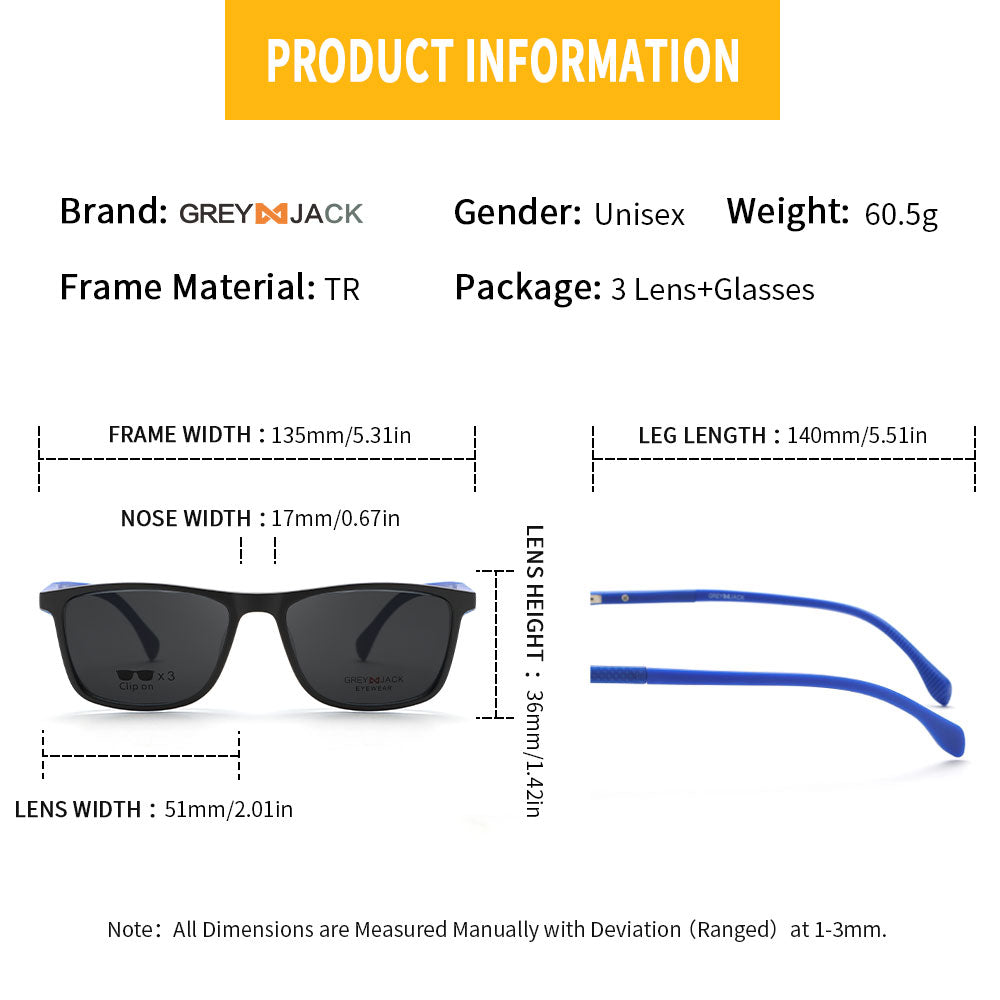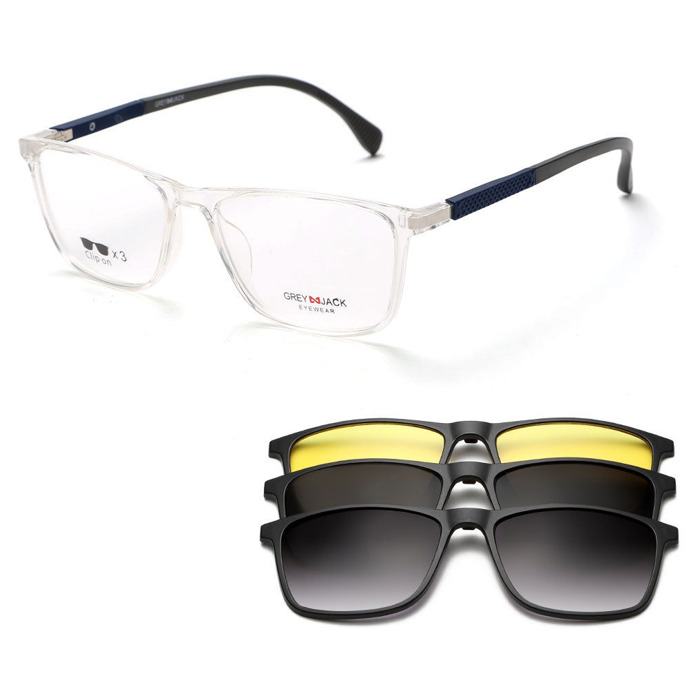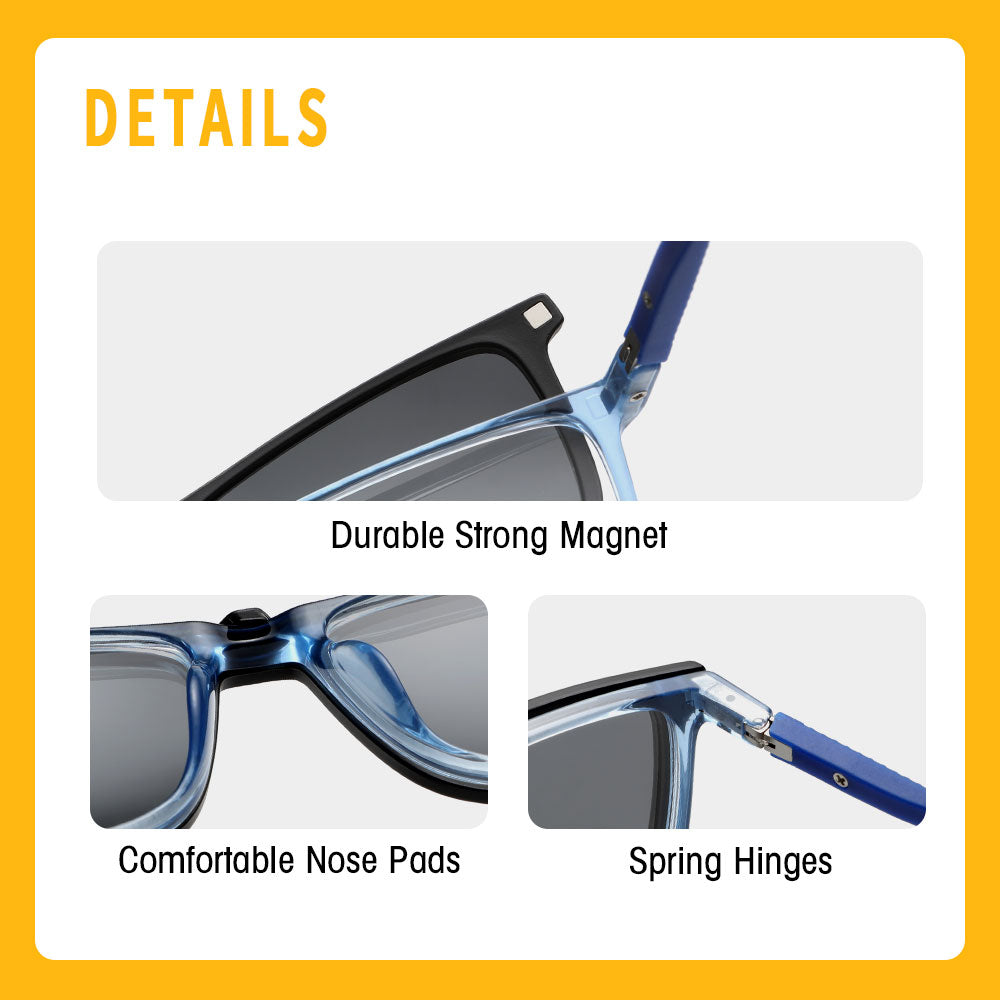 Polarized Rectangle Clip on Glasses with 3PCS Magnetic Lens 10010