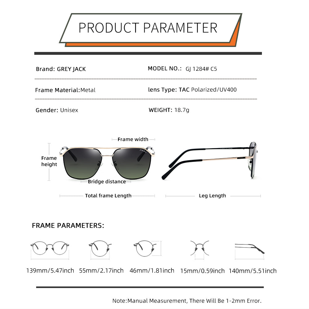 These GREY JACK Polarized Sunglasses are made with durable metal.The Weight is light,so that your face can not feel the weight of the extrusion.