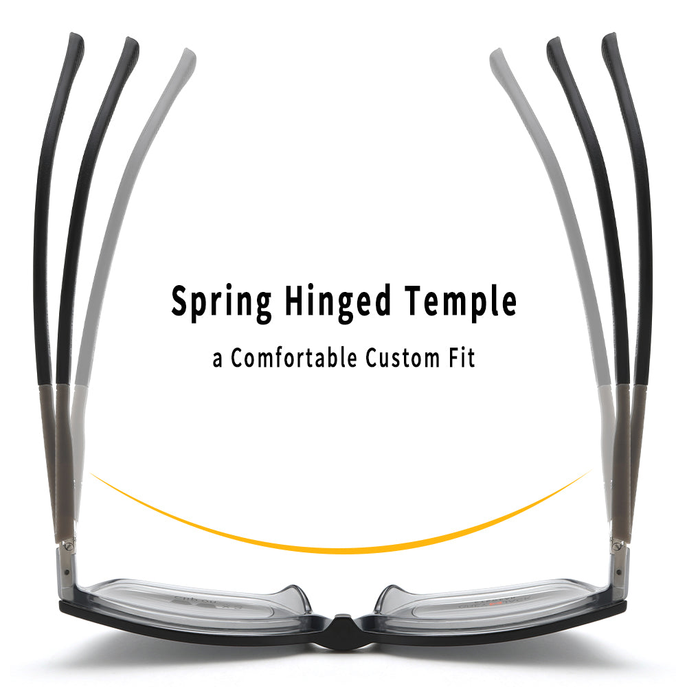 Flexible Spring hinges in the frame that add to the ease of getting them on and off and enhance the fit. Takes pressure off your ears and helps prevent bending the frames!