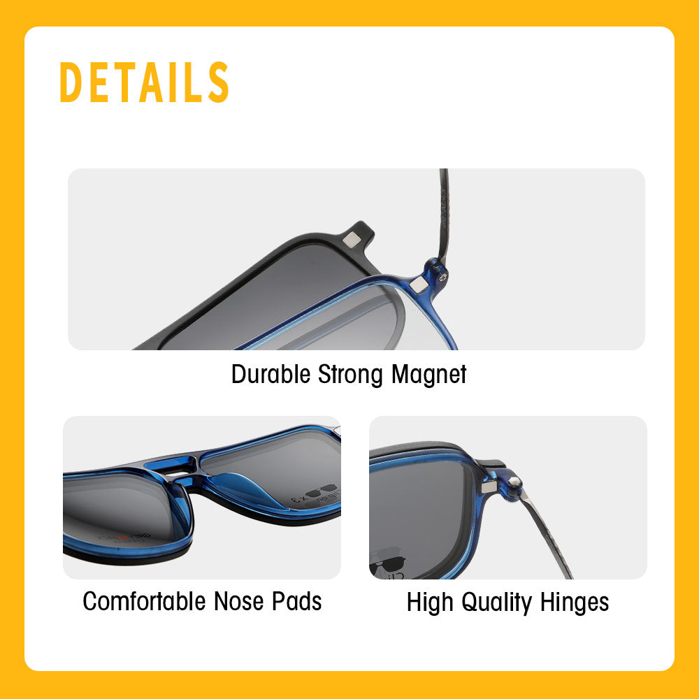 The easy magnetic clip sunglasses is very convenient to wear. It designed for myopic men women.The right and left magnets of the lens will be together with the hanging adsorption frame automatically when approaching.